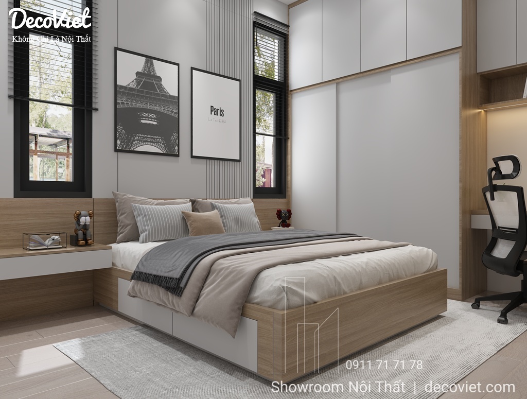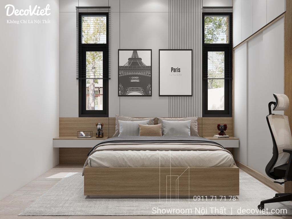 Mẫu phòng ngủ master đẹp, sang trọng được DecoViet thiết kế theo phong cách hiện đại với gam màu ấm cúng.
