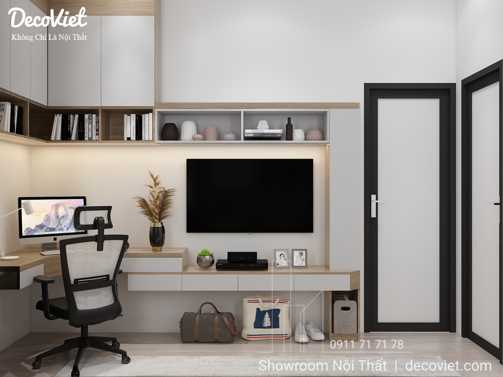Góc làm việc, kệ tivi hay giá sách không quá cầu kỳ với những chi tiết phức tạp nhưng vẫn mang nét đẹp riêng và được rất nhiều người yêu thích.