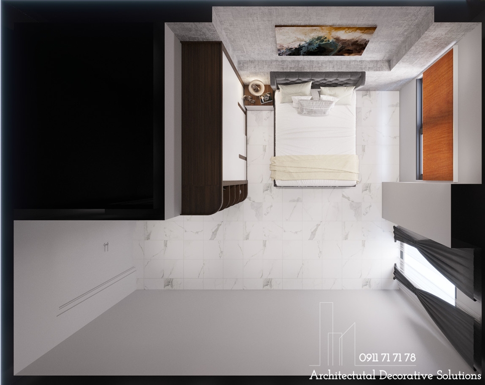 Mẫu nội thất phòng ngủ nhà phố này với phong cách đơn giản, gam màu trắng trang nhã với những mảng màu đen đan xen, tạo nên nét nổi bật cho thiết kế.