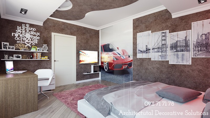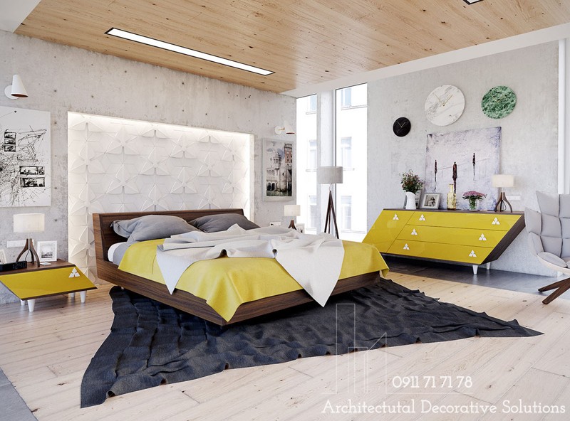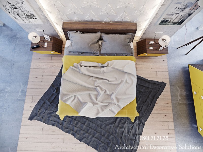 Wow! phòng ngủ đặc biệt này làm cho một công trình đầy sáng tạo với chủ đề nội thất góc cạnh và hình học. Bảng màu phổ biến và đồ nội thất độc đáo trở thành sự lựa chọn mang lại ấn tượng không thể nào quên. Đây cũng là một sự lựa chọn dũng cảm và hứng khởi.