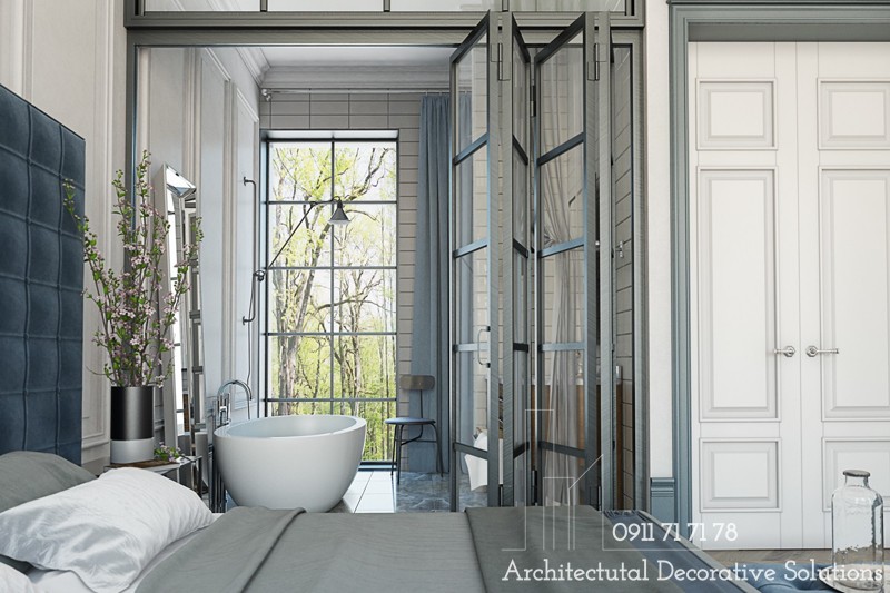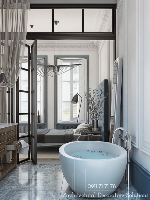 Thật là một tuyệt tác của ánh sáng với cách tiếp cận tự do sang trọng. Một bồn tắm “lộ thiên” trong phòng trở thành tâm điểm chú ý của thiết kế nội thất phòng ngủ này.