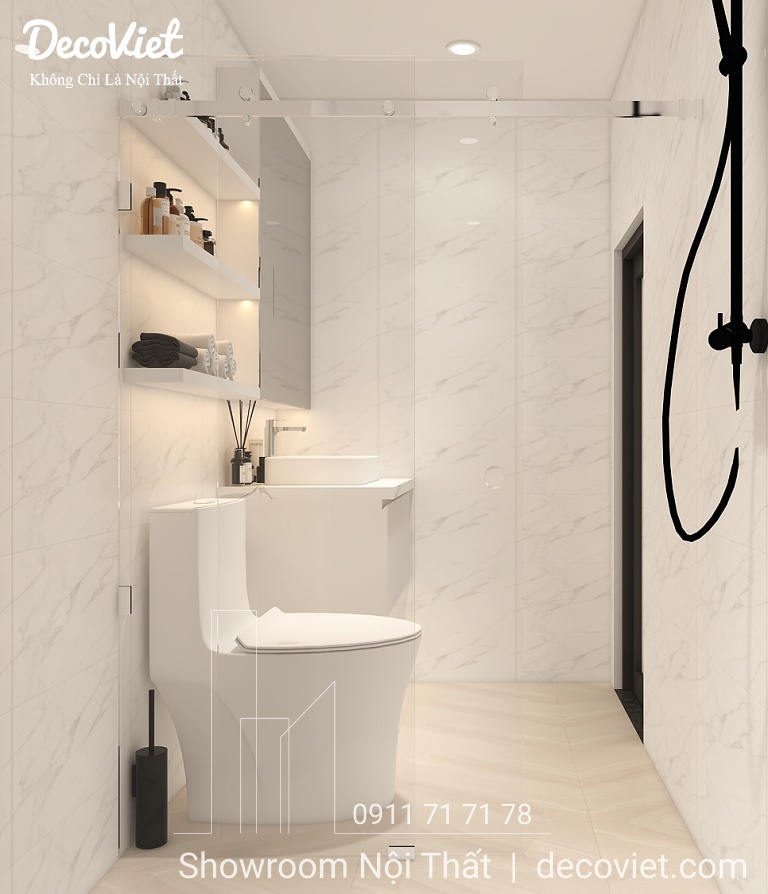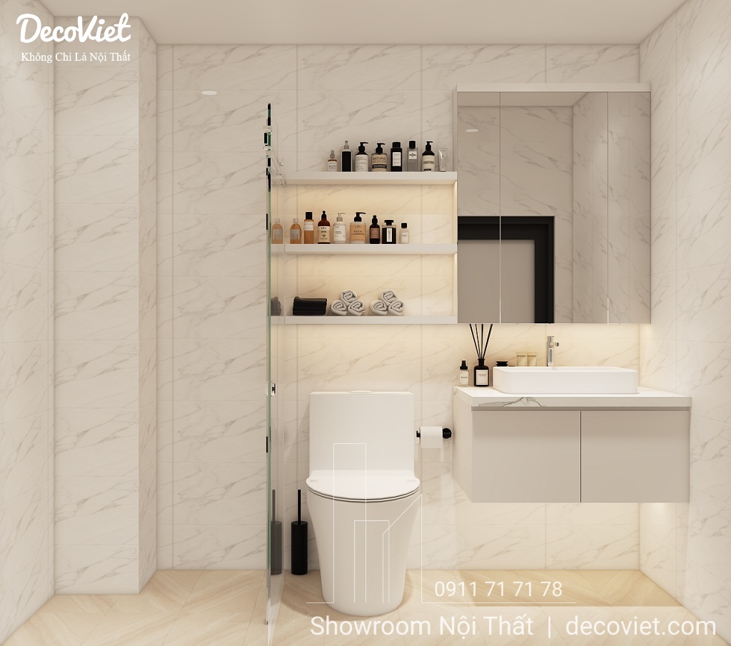 Sở hữu một căn phòng tắm đầy đủ tiện nghi để có thể hoà mình vào những phút giây thư giãn là điều mà mọi người đều mong muốn. Phòng tắm riêng tại phòng ngủ master sử dụng gam màu trắng sạch sẽ, có khu vực phòng tắm kính riêng, có bồn cầu và bồn rửa mặt riêng, tạo nên sự thuận tiện trong việc sử dụng cũng như sinh hoạt