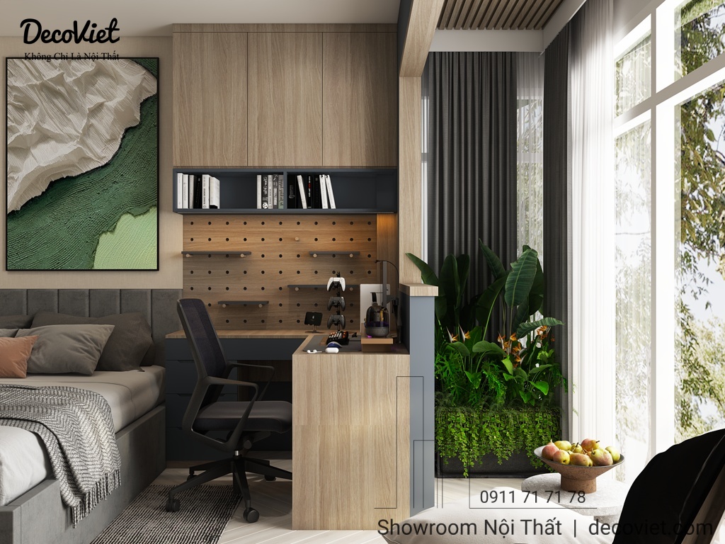 Ngoài ra, bố trí bàn làm việc trong phòng ngủ master cũng sẽ góp phần biến phòng ngủ của bạn trở nên ấn tượng, độc đáo và tiện nghi. Chúng cũng thúc đẩy, tạo thêm động lực để bạn nhanh chóng hoàn thành công việc của mình đúng thời hạn.