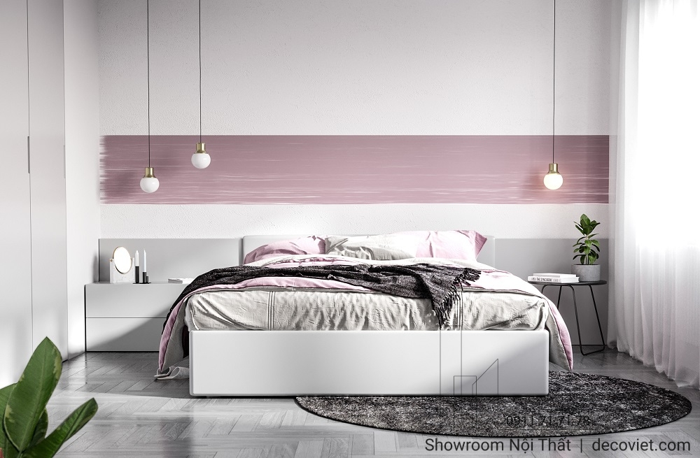 Phòng ngủ tươi trẻ với màu trắng - hồng chủ đạo