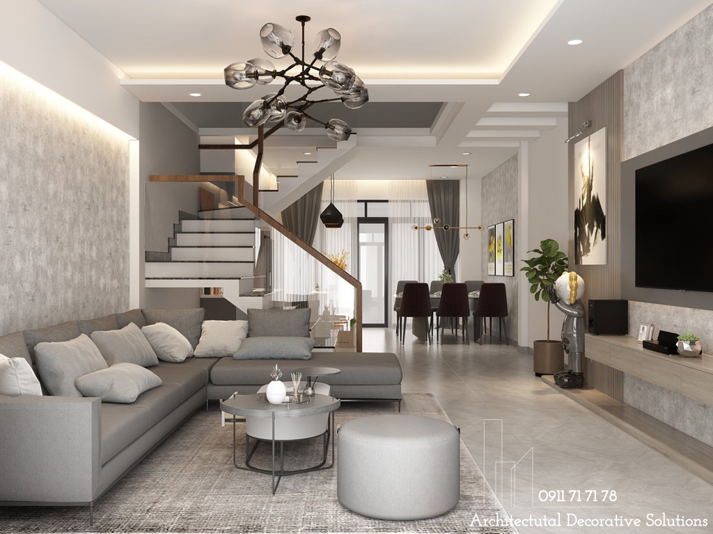 Phòng khách là không gian đầu tiên chúng ta sẽ bước vào trong một căn nhà. Vì vậy, theo mong muốn của gia chủ DecoViet đã lựa chọn phong cách hiện đại, sang trọng trong thiết kế nội thất phòng khách.