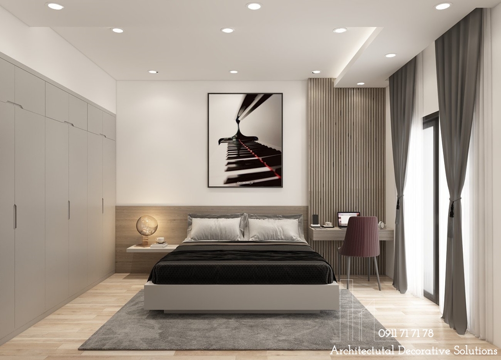 Phòng ngủ nhờ cách phối màu đẹp mắt, bố trí nội thất hợp lí mà căn phòng vô cùng tiện nghi và hiện đại, khiến ai nhìn vào cũng sẽ thích mê.