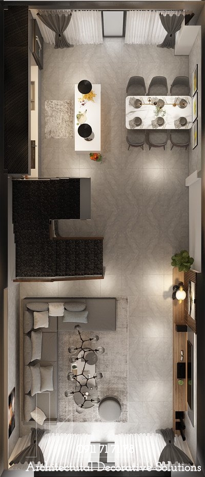 Bản vẽ tổng quan thiết kế nội thất phòng khách và bếp