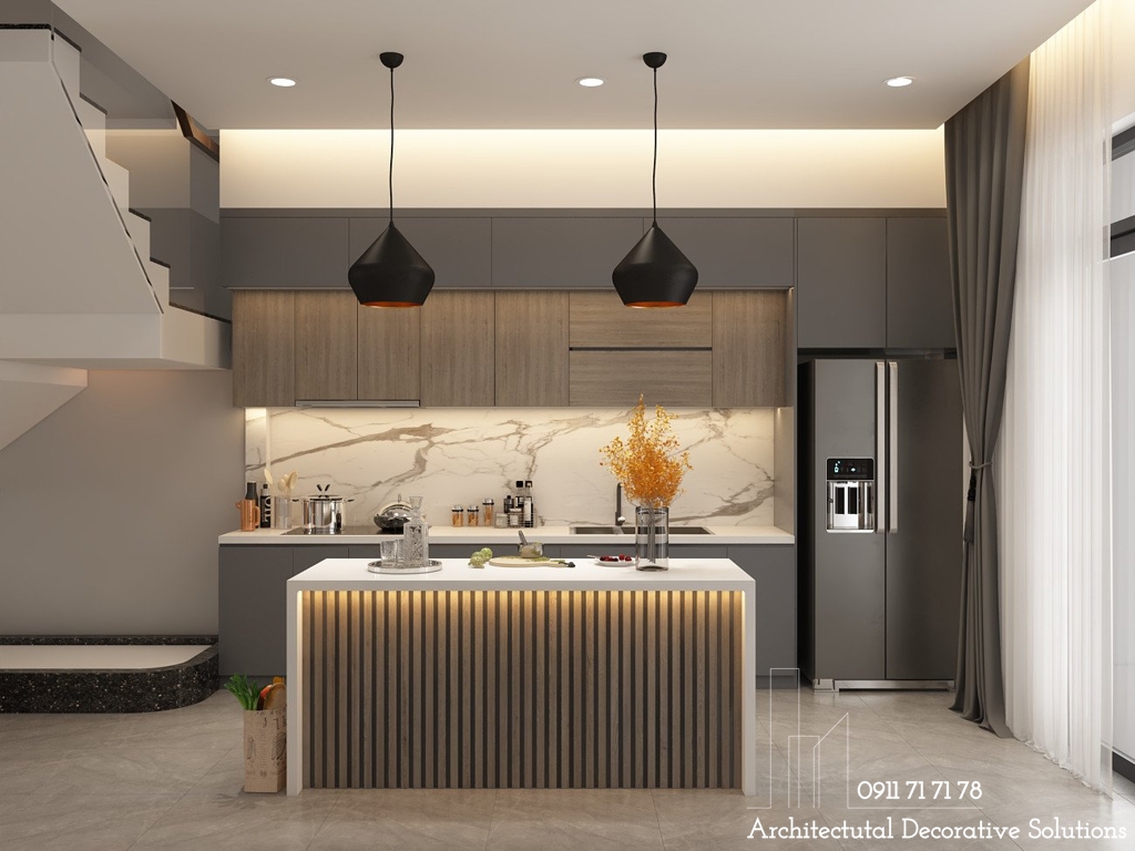 Hiện nay, phòng bếp không chỉ được xem là không gian đơn thuần chỉ để nấu nướng mà còn là nơi trang trí không gian nhà thêm thẩm mỹ, là nơi sinh hoạt chung của cả gia đình nơi để gắn kết yêu thương sưởi ấm cho tình cảm gia đình. Thay vì thiết kế mỗi không gian chức năng thành một khu vực riêng biệt thì nhiều gia đình lại lựa chọn cho mình lối thiết kế mở giữa phòng khách và phòng bếp. Đặc biệt là đối với mô hình căn hộ chung cư, nhà ống hiện nay.