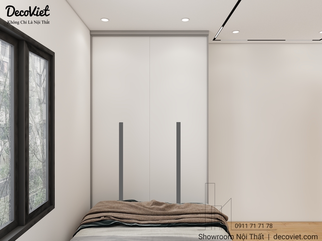 Những vật dụng nội thất với kích thước phù hợp, không quá to chiếm diện tích sẽ là sự lựa chọn hoàn hảo cho phòng ngủ nhà phố 4 tầng.