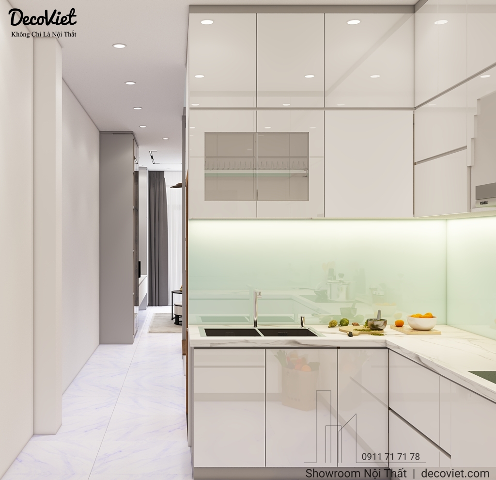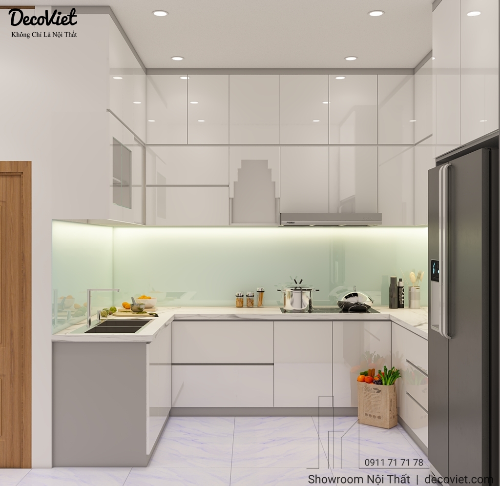 Thiết kế phòng bếp chú trọng đến yếu tố phong thủy mang lại vượng khí, may mắn cho gia chủ. Bố trí nội thất với tủ bếp tối giản tạo sự thuận tiện cho các thành viên, đầy đủ công năng và đảm bảo yếu tố thẩm mỹ.