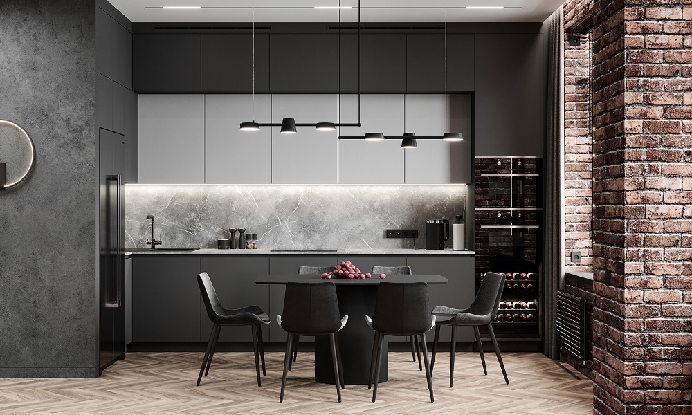 Căn phòng bếp đẹp thì cần phải có các đồ nội thất phòng bếp chủ đạo như bộ bàn ghế ăn, kệ tủ, tủ bếp,... Để thể hiện phong cách sống và gu thẩm mỹ của mình thì nữ gia chủ chỉ cần sắp xếp các đồ nội thất trên một cách hợp lý nhất và hài hòa nhất.