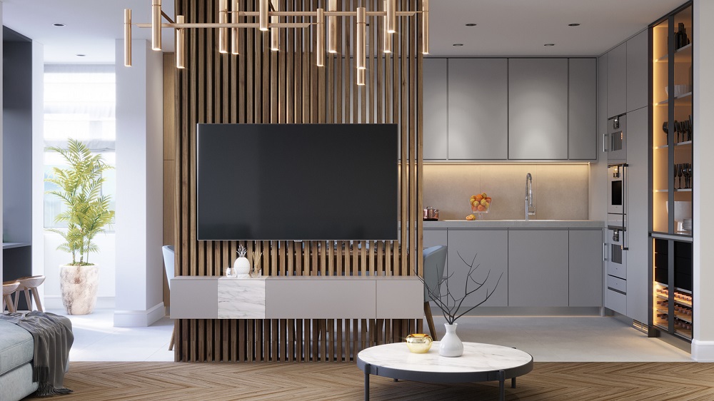 Màu sắc: của tủ và tường phải hài hòa và cân đối, tạo được điểm nhấn của tủ, thông thường màu tường và màu tủ là hai màu tương phản nhau, màu tường phải làm nền nổi bật cho tủ bếp.