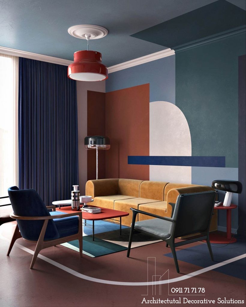 Phong cách này sử dụng màu sắc để tạo nên không gian ấn tượng nhưng cũng thư giãn nhất. Các bức tường thường không sử dụng 1 màu sắc đơn giản. Thay vào đó, các bức tường có thể được phân chia thành từng khối hình học được bố trí theo phương ngang, phương dọc. Các khối hình học này sẽ mang màu sắc đầy ấn tượng và nổi bật.